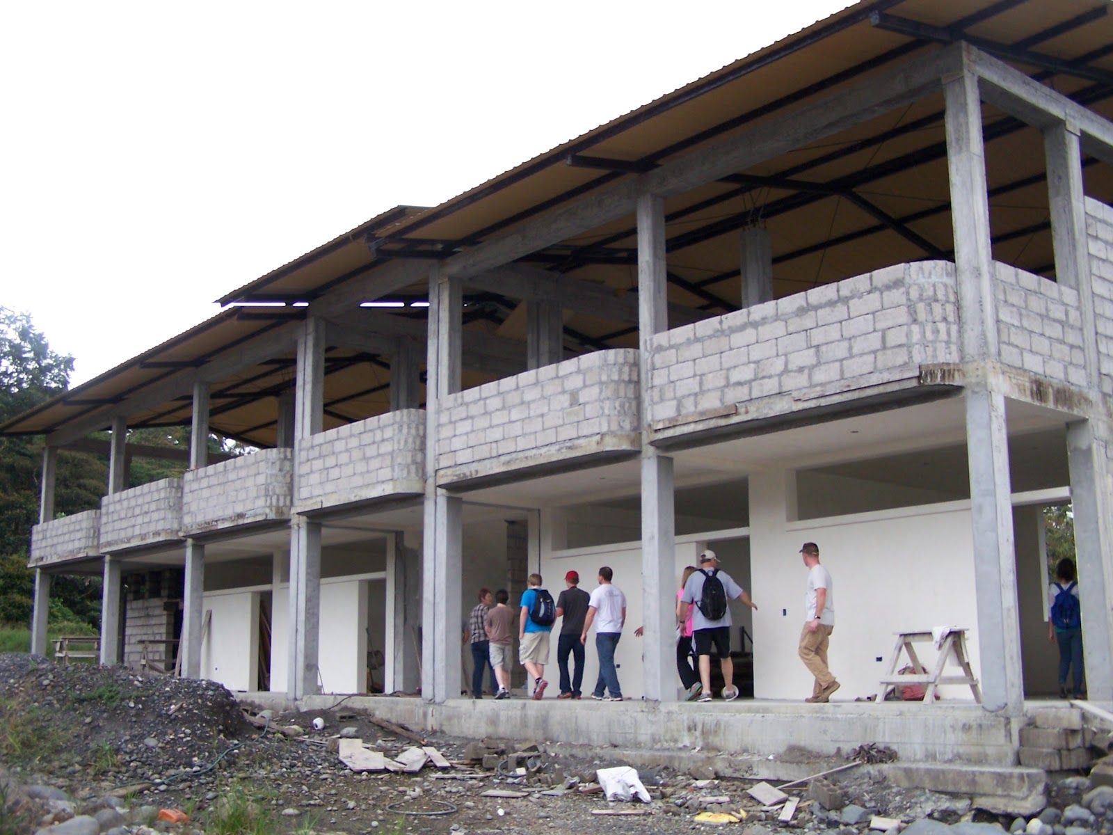 For nearly two years, the maestros (Ecudorian construction workers) and multiple short-term volunteer teams have been working on the construction of the Casa de Fe school. Jeff and Jesse were here in March 2011 when a lot of concrete was being poured.