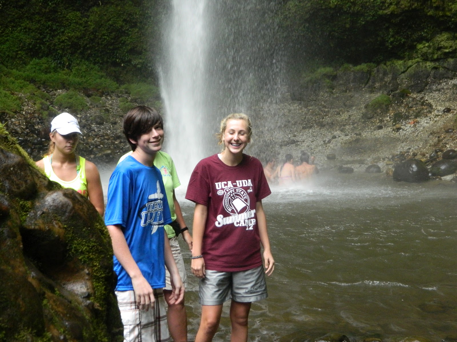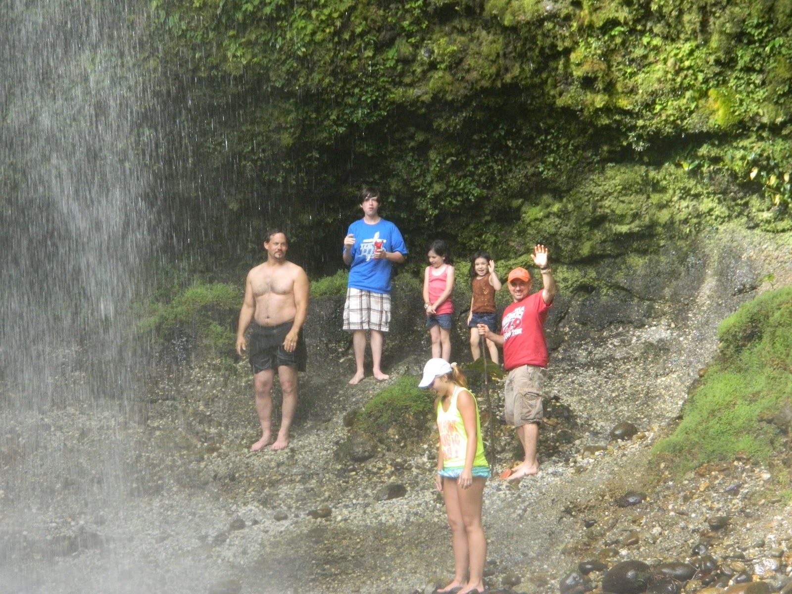 This is about half of our group under/behind the waterfall..